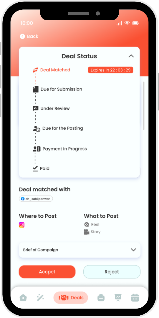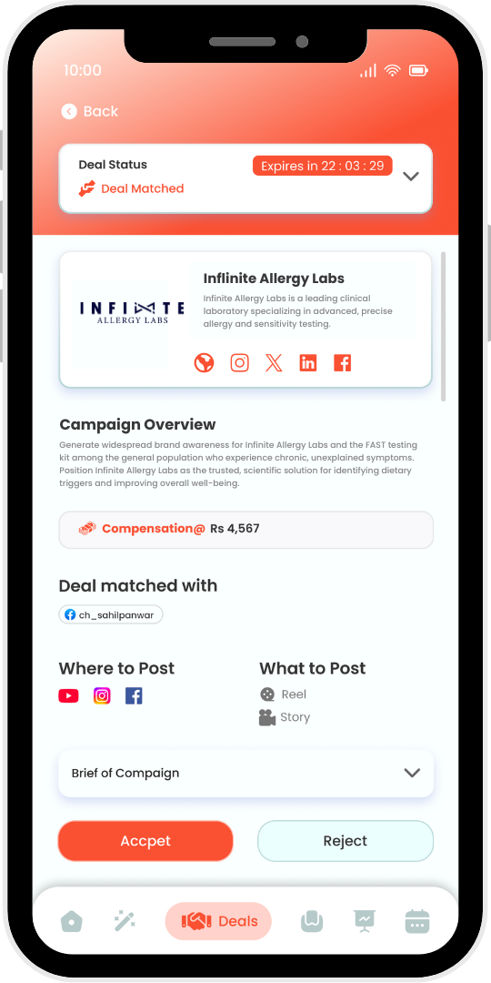 You will start seeing all Brand Deals as soon as you complete the onboarding form within PlatterHub App Deals section. Our AI Matching Engine will match you with relevant Brand deals automatically.